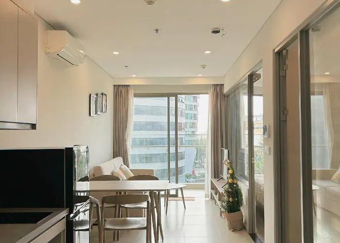 The beachfront 52 m² Leafy Homestay Vung Tau is located nearly 5 minutes' walk from Lotte Cinema and overlooks the mountain. Back Beach Square, Vung Tau City is 2.3 km from the apartment, while the Bach Dinh is nestled at the distance of around 3 km away.